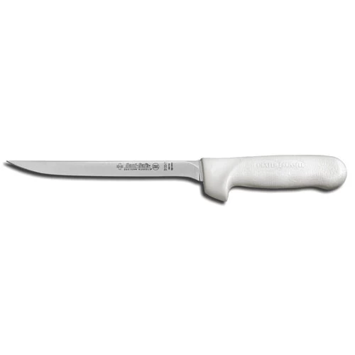 This Dexter-Russell 7″ fillet knife is part of their Sani-Safe® line and features a 5″ polypropylene handle that is as easy to grip as it is to clean. The 7″ DEXSTEEL™ blade is constructed of a proprietary high carbon, stain-free steel that is ground and honed to produce an edge to meet commercial standards. The blade is stiff enough to handle bones, but flexible enough to finesse the skin from fillets. Grab a Dexter-Russell fillet knife, roll up your sleeves and get-the-job-done.